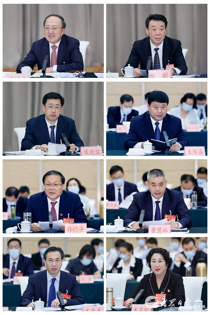 于国安、任刚、侯晓滨、王传喜、孙德士、黄慧林、王景美、朱呈镕等代表作了发言。大家一致认为,李干杰同志代表十一届省委所作的报告,坚持以习近平新时代中国特色社会主义思想为指导,通篇贯穿习近平总书记对山东工作的重要指示要求,政治站位高、目标思路准、工作举措实,符合中央精神、契合山东实际、顺应人民意愿,是一个鼓舞人心、催人奋进的好报告。大家表示,一定认真学习领会、贯彻落实好报告精神。
